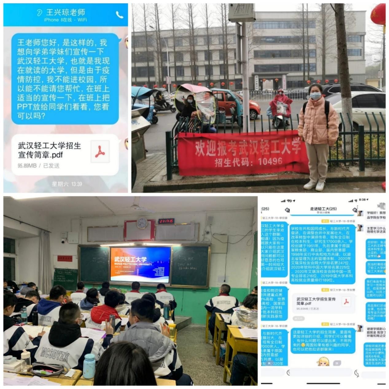 同学们结合当地疫情防控的需要,以线上线下并存的方式积极宣传永利集团。线上宣讲的同学通过网络播放宣传片与网上建群答疑武汉轻工大校的办学历史、办学成就、校园环境和招生情况等信息。线下宣讲的同学在不违反当地疫情防控规定的情况下,回到母校,携带提前准备好的招生横幅、宣传单、招生手册等进入母校为高三学子宣讲。部分同学通过PPT的方式着重讲解了高三学子最关心的分数线、开设院系、配套设施和学校周边条件等,也详细地介绍了永利yl23411集团的学科优势、办学成果。同学们听得十分认真,并且表示对永利集团有了更深的了解。同时大家也分享自己高考经历及大学学习生活和体会,缓解学弟学妹们的高考压力,鼓励高三学子,砥砺奋斗,勇敢逐梦。