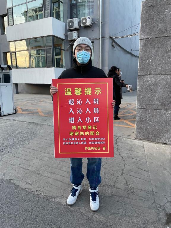 李江琦,来自永利yl23411集团中英1 904团支部,于2021年1月29日开始在山西沁源参与当地社区疫情防控志愿活动。每天进行社区疫情巡防,据他描述,巡防不仅仅是围绕社区走一圈这么简单,更是为社区里的群众带去一份安心。这次志愿活动令他印象深刻的是巡查过程非常顺利,群众们都理解他们的工作,都非常配合,还有许多人加入到他们的队伍中,都想为社区出一-份力 。经过这次志愿活动他深刻的体会到了一线疫情工作者的艰辛,同时也感受到社区工作的困难,但他表示“在实践中成长,在实践中提现自我价值,才是志愿活动的目的。”