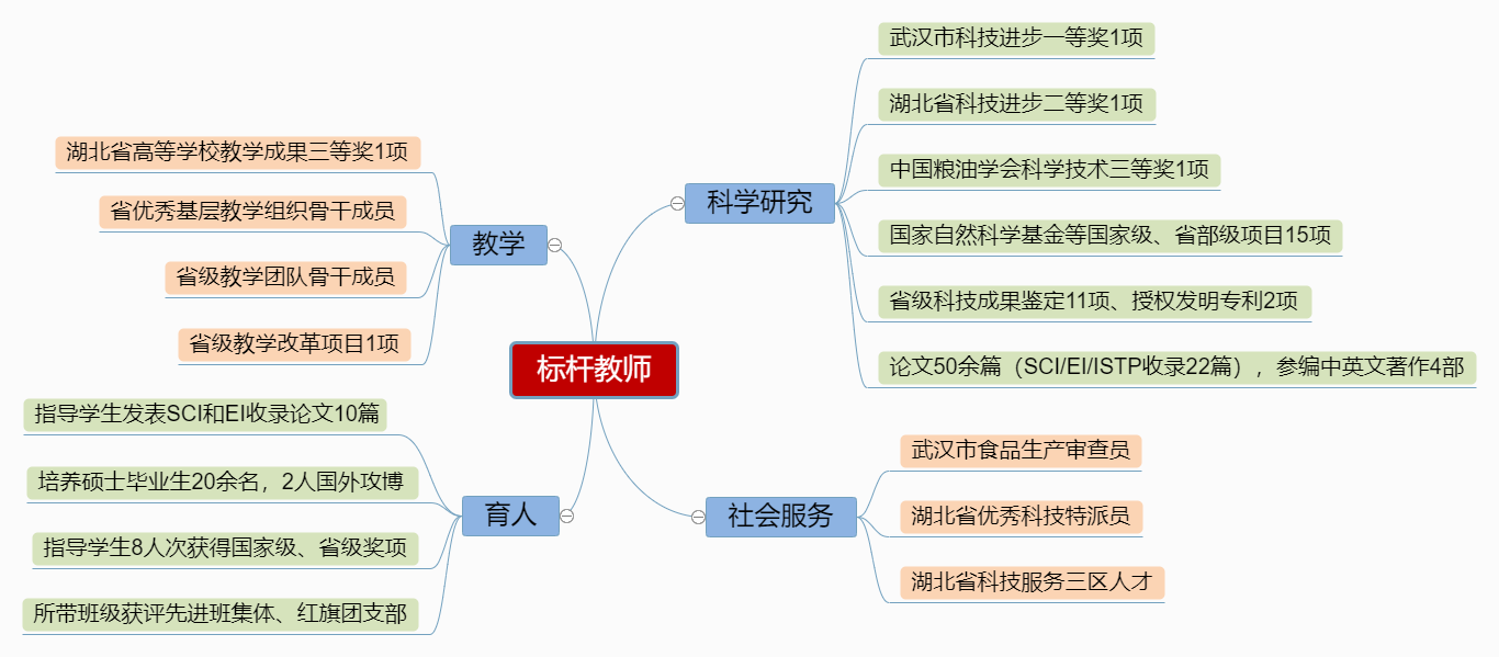 目前,沈老师主持国家级科研项目2项,省部级科研项目2项,主持省级教学改革项目1项,参与国家级和省部级项目15项;发表论文50余篇(SCI/EI/ISTP收录22篇),参编英文著作2部,中文著作3部;省级科技成果鉴定11项;获得第三届“金龙鱼青年教师奖”等荣誉。沈老师是中国粮油学会食品分会理事、中国粮油学会面条分会理事、湖北省食品科学与技术协会青年委员会理事。