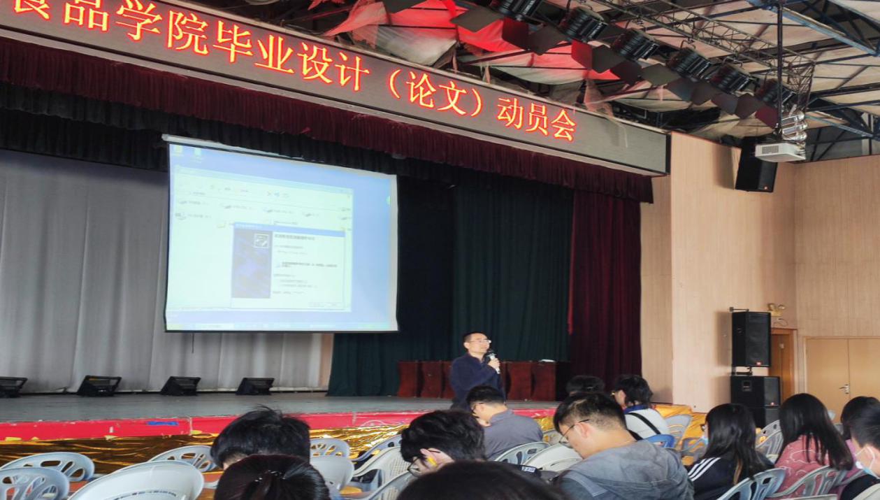 在动员会的开始,沈经理以时间为轴为大家讲解了从毕业设计及毕业论文选题开始到完成这些内容的一系列安排,为同学们讲解了不同专业对应的毕业论文或毕业设计的要求。除此之外,沈经理还为大家介绍了大四上学期离校前需要提交的内容。