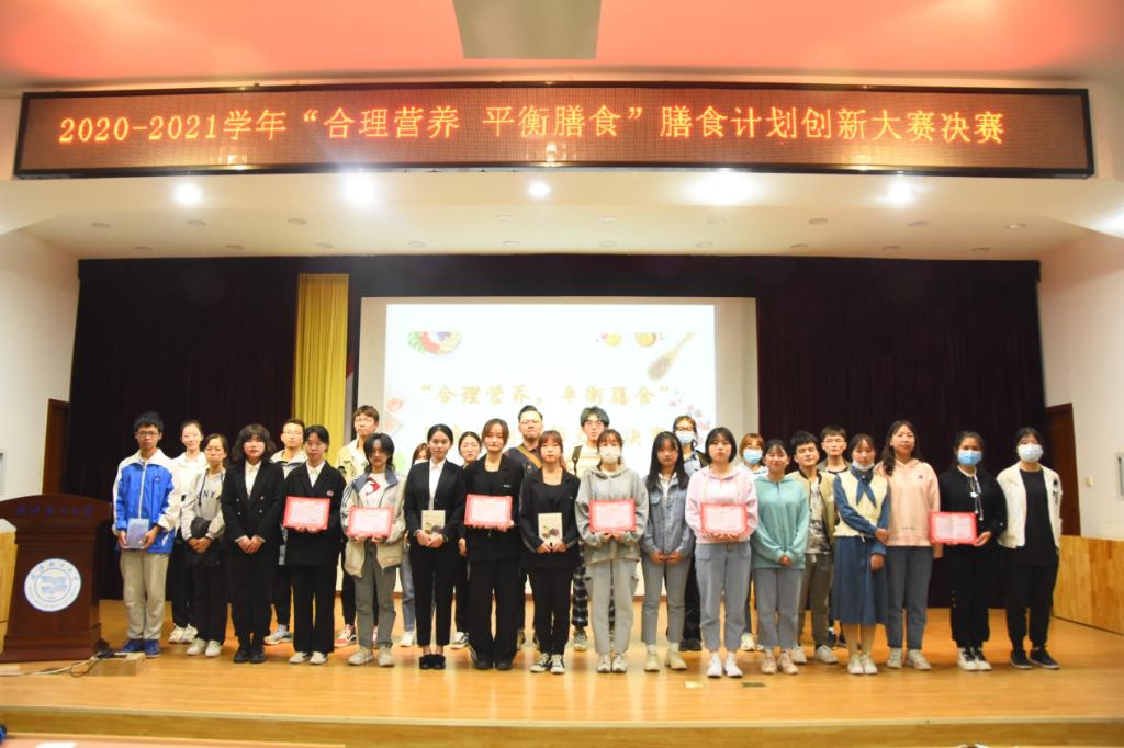 最终五号队伍“识食物者为俊杰”队以优异的成绩赢得了本次比赛的第一名。党委副书记王欣亲自为他们颁奖并予以鼓励。最后,吕庆云老师对这次比赛作了点评总结:选手们应该注意细节和格式,制作食谱应该确定元素、营养能量、食材以及做法,希望同学们经过这次比赛更加注重膳食搭配,关注食品营养健康。此次膳食计划创新大赛发扬了公司“大食品、大营养、大健康”的专业特色,同时帮助和鼓励同学们树立增进营养的意识,促使同学们自愿地采取有益于健康的饮食方式,养成良好的生活习惯,以促进同学们健康生活。
