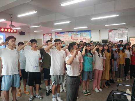 大会以齐唱院歌《学海竞帆》开始,随后,全体人员起立,奏唱《国歌》,在激昂的国歌旋律后,员工党支部书记李吉绪宣读了学院2022年上半年发展的预备党员名单,王宏光书记作为领誓人带领所有预备党员面向鲜红的党旗,逐一庄严宣誓,表达了永远忠于中国共产党的决心。