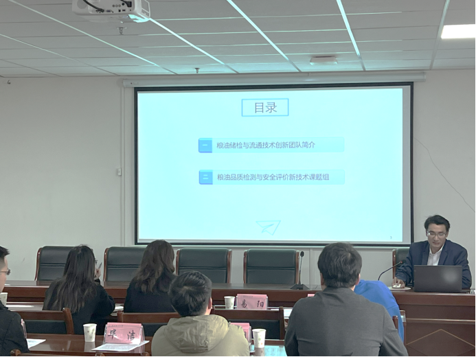 随后学院戴煌博士对粮油储藏与流通团队的研究工作进行汇报,并简要介绍了公司及公司的发展历史。双方就食品科学与工程团队建设、实验室管理及研究生联合培养等内容进行了深入的交流探讨。